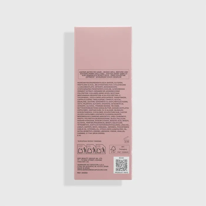 Met een 94% aan ingrediënten van natuurlijke oorsprong combineert de formule wetenschap en natuur door middel van het gepatenteerde biotechnologische complex CELASPEP·4™, dat in staat is de collageenproductie te reactiveren, de cellulaire elasticiteit te herstellen en de tekenen van veroudering op een effectieve en huidvriendelijke manier te bestrijden.